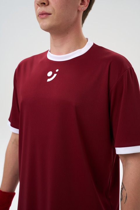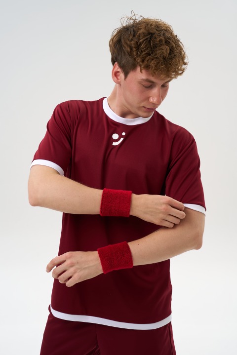 Бордовая мужская теннисная футболка letom с белой окантовкой — удобная спортивная футболка для тренировок и матчей с нескучным дизайном.