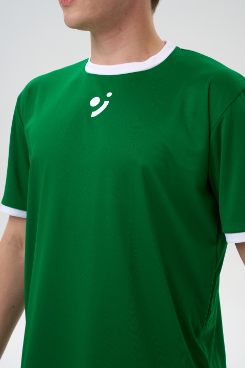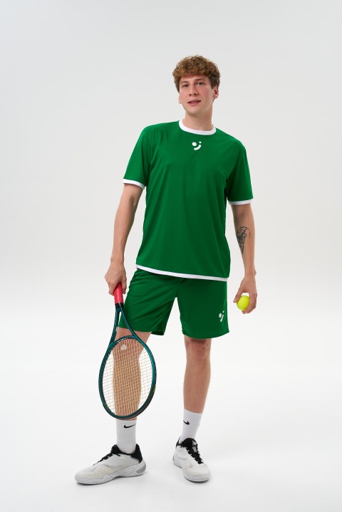 Зеленая мужская теннисная футболка letom с белой окантовкой — удобная спортивная футболка для тренировок и матчей с нескучным дизайном.