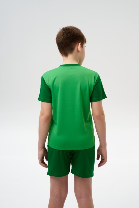 Зеленая детская теннисная футболка letom с темно-зелеными рукавами — удобная спортивная футболка для тренировок и матчей с нескучным дизайном.