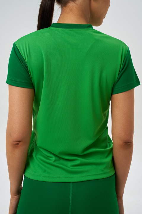 Зеленая женская теннисная футболка letom ЛЕГКОСТЬ+ с темно-зелеными рукавами - удобная спортивная футболка для женщин для тренировок, матчей и турниров с выразительным, нескучным дизайном.