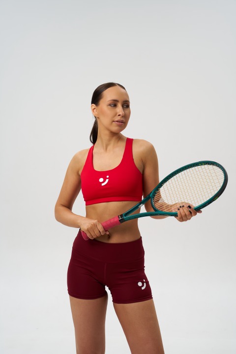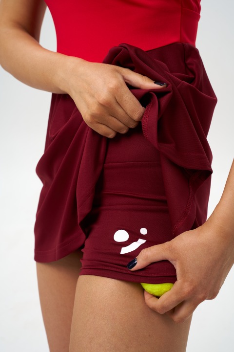 Бордовые женские базовые теннисные шорты letom ХАРАКТЕР+ — базовые спортивные шорты для тенниса, удобная женская форма для тренировок, матчей и активной игры на корте.